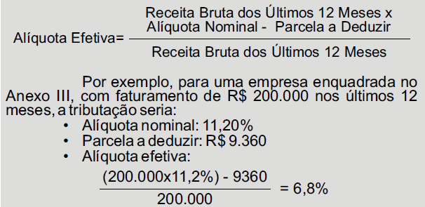 Fórmula para encontrar a alíquota efetiva é: